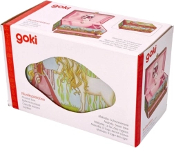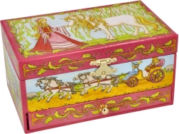 De sieradendoos in speeldoosstijl is de ideale accessoire voor kleine dames die hun sieraden stijlvol willen opbergen. Bij het openen speelt de melodie van de opera Het Zwanenmeer en begint het witte paardje te dansen voor de spiegel.