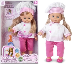 Pop Natalia Zoete Keukentje van 42 cm is gekleed in een schattige koksoutfit en wordt een geweldige vriendin voor elke kleine kok. Ze leert kinderen niet alleen kookkunsten, maar zegt ook een versje op en zingt 2 liedjes.
