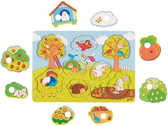 Ontdek plezier en leren met de Goki houten puzzel In de tuin, die de groei en ontwikkeling van uw kind ondersteunt. Het speelgoed is ontworpen om: