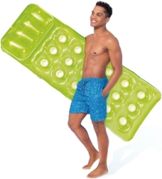 Geniet volop van de zomer met de opblaasbare Intex-matras van 188 × 71 cm in een frisse groene kleur. Dankzij de stabiele COLI-BEAM-constructie, twee luchtkamers en duurzaam PVC biedt hij uitstekende stabiliteit, comfortabel liggen en een lange levensduur. Ideaal voor in het zwembad, meer of de zee, met een draagvermogen tot 100 kg en een reparatiepatch in de verpakking.