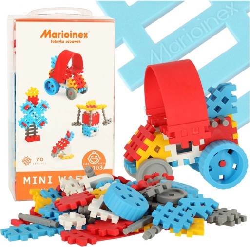 De Mini Wafle Constructor is een prachtige blauwe set met 10 nieuwe onderdelen die de bouwmogelijkheden uitbreiden. In de verpakking zit ook een inspirerende handleiding, zodat je kind snel en gemakkelijk aantrekkelijke creaties kan maken. In totaal zorgen 70 onderdelen voor gevarieerd en eindeloos speelplezier, terwijl ze ook de motoriek en het logisch denken helpen ontwikkelen.