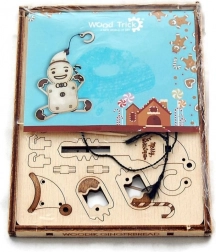Unieke houten puzzel van het merk WoodTrick, die kunst en mechanica combineert in de vorm van een mechanische nar. Ideaal voor verzamelaars en liefhebbers van houten modellen.