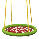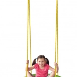 Het vrolijke en kleurrijke ontwerp van de schommel met een rode zitting en een groene rand trekt direct de aandacht van elk kind.