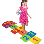 Springen op de genummerde delen en het werpen van de ringen stimuleren balans, coördinatie, behendigheid en numeriek inzicht.