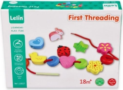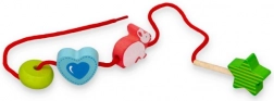 Textiele koord met houten uiteinden voor gemakkelijk rijgen, helpt bij het ontwikkelen van fijne motoriek.