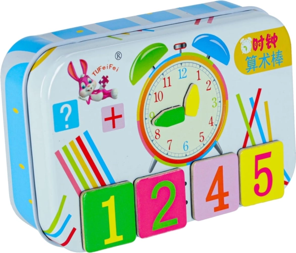 Praktische educatieve set die kinderen op een speelse manier helpt met het leren van uren en minuten en met de eerste rekenbewerkingen. Dankzij de levendige kleuren, magnetische kaartjes en het compacte metalen etui is hij ideaal voor de kleuterschool, school en onderweg.