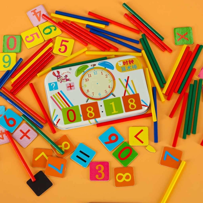 De set is perfect voor het visueel begrijpen van tijd en basisrekenoefeningen – met behulp van de kaartjes met cijfers en symbolen oefenen kinderen optellen en aftrekken. Dankzij de compacte afmetingen neem je de set gemakkelijk overal mee naartoe – naar de kleuterschool, school en op uitstapjes.