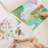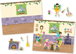 De set bevat kleurrijke illustraties van feeën en magische landschappen die kinderen uitnodigen om hun eigen scènes en verhalen te creëren.