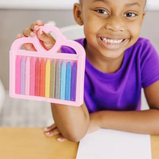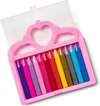 Stimuleer de creativiteit van kinderen met deze kleurrijke set wasco’s met 12 intense tinten voor inkleuren, lijnen trekken en eerste artistieke experimenten. Het compacte etui met hartje/kroon-handgreep houdt alles bij elkaar, zodat de wasco’s niet kwijtraken en altijd binnen handbereik zijn.