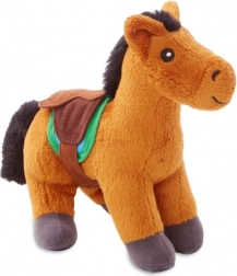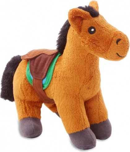 Het pluchen paardje met aangename textuur, groen zadel en stevige details is ideaal om te knuffelen en mee te spelen.