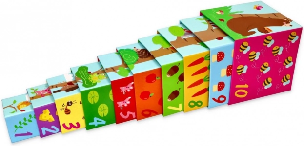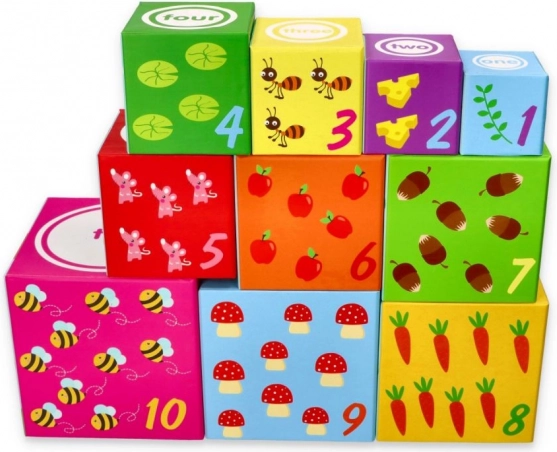 Deze set bevat in totaal tien blokken van karton, waarmee een toren kan worden gebouwd van groot naar klein voor extra stabiliteit en plezier. Ideaal voor kinderen vanaf 12 maanden en voldoet aan alle veiligheidsnormen, inclusief CE-conformiteitsverklaring.