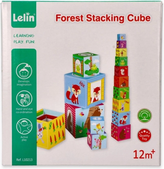 Ontdek de wereld van bosplezier en leren met onze stapelblokken van het merk Lelin. Een geweldig speelgoed voor kinderen dat de verbeelding, hand-oogcoördinatie en actief spel stimuleert. Elk blok is versierd met illustraties van bosdieren en cijfers, zodat kinderen al spelend kunnen leren. De afmetingen van het grootste blok zijn 15 x 15 x 15 cm, terwijl het kleinste blok 6 x 6 x 6 cm meet. De totale hoogte van de toren bedraagt 106 cm.