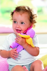Het knuffelige ontwerp zonder harde onderdelen is vriendelijk voor de tere babyhuid en ideaal voor de eerste knuffels en ontspanning.