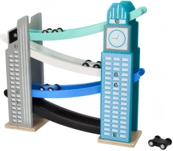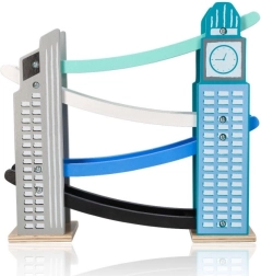 Onze houten racebaan is ontworpen om te lijken op iconische stadsgebouwen, inclusief een toren met klok. Hij is gemaakt van hoogwaardig hout en biedt meerdere niveaus met diverse gekleurde hellingen in blauw, zwart en wit. Kinderen hebben plezier met het loslaten van kleine gekleurde autootjes van boven naar beneden. De baan biedt niet alleen vermaak, maar bevordert ook de fijne motoriek en leert over natuurkundige principes zoals zwaartekracht en snelheid.