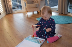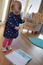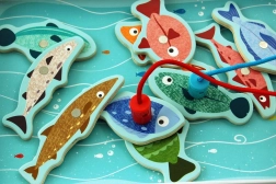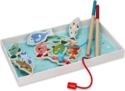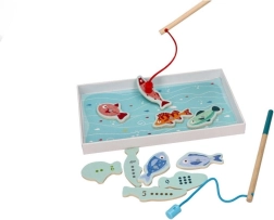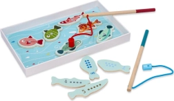 Bij het spelen gebruikt het kind een houten hengel met magneet, wat helpt bij het ontwikkelen van hand-oogcoördinatie en fijne motoriek.