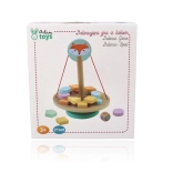 Een leuk en educatief houten balansspel met een schattig vossenmotief helpt kinderen vanaf 3 jaar hun fijne motoriek, coördinatie en geduld te ontwikkelen. Kleurrijke geometrische vormen worden op de basis gestapeld en kinderen proberen de balans van de hele constructie te bewaren – ideaal om alleen of met het gezin te spelen. CE-certificering.