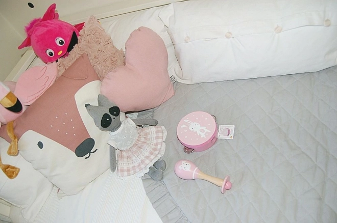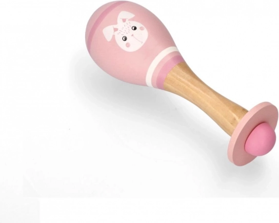Breng de kinderwereld tot leven met zachte klanken dankzij deze houten maracas in een lieve roze kleur met een konijntjesmotief. De veilige rammelaar voor baby’s vanaf 5 maanden ondersteunt de ontwikkeling van het gehoor en de fijne motoriek, heeft gladde, afgeronde randen en voldoet aan de CE-certificering. De ideale afmeting van 18 × 6 cm past perfect in kleine handjes.