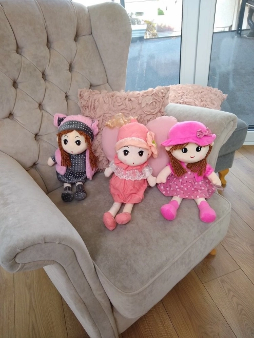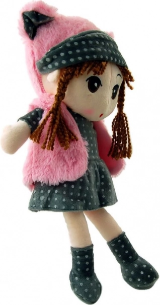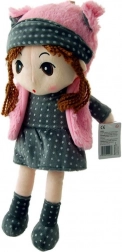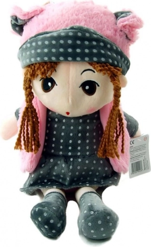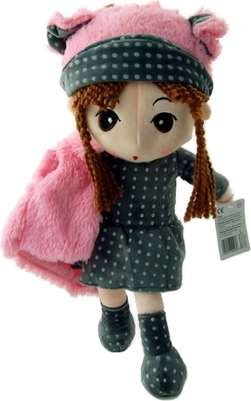 Maak kennis met pop Pola, een prachtige pluchen speelgoedpop met bruin gevlochten haar, gekleed in een grijs prikkelig outfit en roze accessoires. Dit zachte speelgoed is de ideale metgezel voor dagelijks spel en voor rustige nachten.