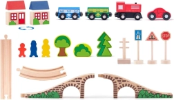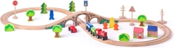 De houten treinbaan in de vorm van een acht met brug is meer dan alleen een speelgoed. Het is een ideaal hulpmiddel voor het ontwikkelen van de verbeelding en motorische vaardigheden van kinderen. Deze set bevat kleurrijke treinen, bomen, huisjes en verkeersborden, die een realistische speelomgeving creëren.