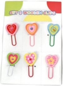 Geef documenten, ansichtkaarten of pakjes een persoonlijke touch. De set bevat 6 houten clips met kleurrijke hartjes- of bloemenmotieven, die opvallen door de kleuren en het kleine steentje in het midden. Dankzij de universele lengte van ca. 4 cm zijn ze gemakkelijk te gebruiken thuis, op kantoor en op school.