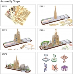 Deze 3D-puzzel brengt de sfeer van Barcelona bij je thuis, inclusief de beroemde SAGRADA FAMILIA en andere architectonische parels. De onderdelen zijn voorgerild, laten zich gemakkelijk uit het vel drukken en je zet ze soepel in elkaar volgens de handleiding, zonder lijm of schaar. Het voltooide model komt prachtig tot zijn recht als stijlvolle eyecatcher in de woonkamer, werkkamer of kinderkamer.