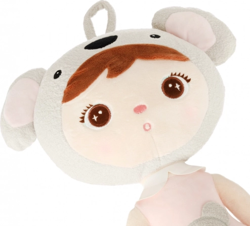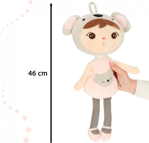 Zachte kleuren, een koala-muts met oortjes en een lief gezichtje maken van de pop zowel een mooie decoratie als een favoriet speeltje.