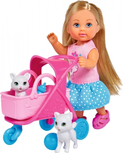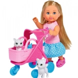 Pop Evička brengt een fantastische wereld van verbeelding tot leven voor kinderen met twee schattige katjes en een kinderwagen met een afneembaar mandje en diverse accessoires die creatief spel stimuleren.