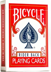 De iconische BICYCLE Rider Back Standard speelkaarten behoren tot de meest gebruikte decks ter wereld. Dankzij het kwaliteitskarton en de speciale air‑cushion afwerking schudden en glijden ze uitstekend en kunnen ze intensief gebruik aan. Ideaal voor familiespellen, poker, bridge en goocheltrucs.