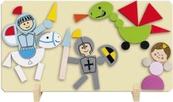 Het magnetische bord en de standaards houden alle stukjes op hun plaats. Kinderen maken eenvoudig hun eigen middeleeuwse taferelen, die ze op elk moment kunnen veranderen.