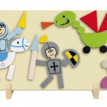 Creatieve magnetische legset met het thema ridders die de fijne motoriek, creativiteit en fantasie van kinderen ontwikkelt. De set bevat een magnetisch bord, standaards en gekleurde houten stukjes met magneet, waarmee kinderen verschillende figuren en scènes uit de middeleeuwen kunnen samenstellen.