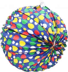 Stijlvolle papieren lampion in de vorm van een bol met een diameter van 30 cm die je optocht of feest een magische sfeer geeft. Dankzij de kleurrijke uitvoering komt hij mooi tot zijn recht en verlicht hij elk avondprogramma. Ideaal voor Halloweenoptochten, tuinfeesten en kinderfeestjes. Let op: lampion wordt geleverd zonder stok en zonder lichtje.