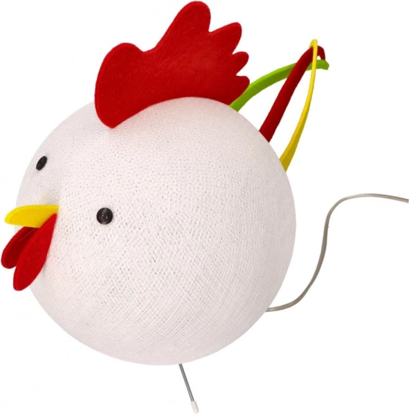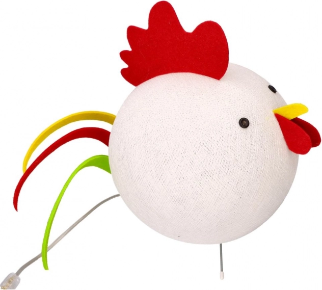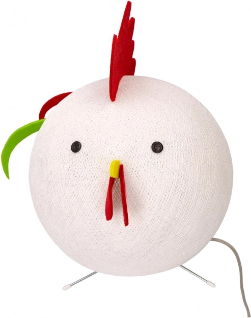 Het bolvormige lichaam, de kleurrijke kam en de snavel zorgen voor een vrolijke look die je interieur een eigenzinnige charme en prettig sfeervol licht geeft.