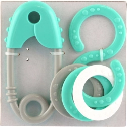 Deze rammelende set van kunststof is ontworpen voor de allerkleinsten en helpt het gehoor, zicht en tast te ontwikkelen. Dankzij het zachte gerammel en de aangename pastelkleuren worden kinderen op een natuurlijke manier gemotiveerd om te ontdekken en te spelen. De vorm van de veiligheidsspeld (lengte 12 cm) en het achtje ligt goed in kleine handjes en ondersteunt veilig oefenen met grijpen.