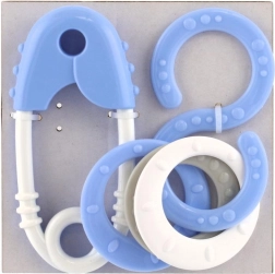 Schattige rammelaarset voor de allerkleinsten in pastelkleuren, met de vorm van een veiligheidsspeld en een acht. Ondersteunt de ontwikkeling van de zintuigen, traint de grijpreflex en is gemaakt zonder scherpe randen en kleine losrakende onderdelen.
