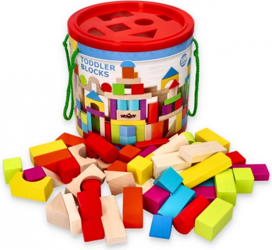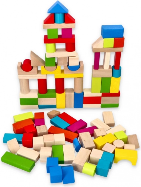 Geniet van uren speelplezier met deze set van 100 stuks gekleurde houten blokken. Uitstekend voor het bouwen van verschillende structuren en het stimuleren van de creativiteit van uw kinderen. Diverse vormen en heldere kleuren, zoals rood, blauw, groen en geel, bieden eindeloze speelopties.