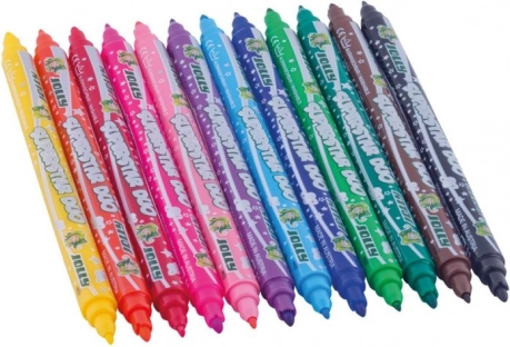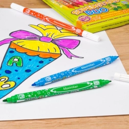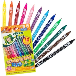 Deze dubbelzijdige stiften bieden veelzijdig gebruik: een fijne punt voor details en opschriften, en een bredere punt voor het vullen van vlakken en expressieve streken. De set bevat 12 intense kleuren die mooi combineren en elk project een professionele uitstraling geven.
