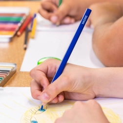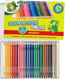 De driehoekige DELTA-kleurpotloden bieden een bont palet van 24 tinten in een praktisch metalen blik dat de inhoud thuis en onderweg beschermt. Het ergonomische driehoekige profiel ondersteunt de juiste potloodgreep en zorgt voor comfortabel tekenen zonder vermoeide handen, iets wat zowel kinderen als ouders zullen waarderen.