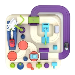 Bedieningsknoppen en draaikwielen geven kinderen de controle over liften, bewegende platforms en de brug. Het spel stimuleert plannen en beslissen – kleine racers moeten nadenken over de beste route en hoe ze de uitdagingen overwinnen.