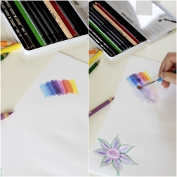 De potloden zijn eenvoudig met water te vervagen – met een paar penseelstreken ontstaan zachte aquarelovergangen en -effecten.