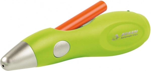 De JOLLY airbrush-pen verandert elk papier, karton of textiel in een uniek kunstwerk. Dankzij de elektrische verneveling van de kleur bereikt u vloeiende overgangen, arceringen en precieze lijnen zonder moeite. De leuke sjablonen met letters, cijfers en motieven maken de start eenvoudig en stimuleren de fantasie van kinderen.