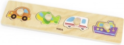 Vrolijke kleuren en duidelijke contouren helpen het visuele waarnemen en de woordenschat te ontwikkelen – het kind leert auto, boot, vliegtuig en caravan herkennen en benoemen. De hoogwaardige houten afwerking staat garant voor een lange levensduur en veilig spelen.