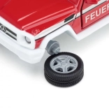 Het oorspronkelijke ontwerp van de terreinwagen leeft voort in het Mercedes G-model, zelfs 40 jaar na de introductie. In de AMG G65-variant met een V12 biturbo-motor en een vermogen van 630 pk is hij buitengewoon krachtig. De brandweeruitrusting met dakmonitoren zorgt ervoor dat dit voertuig niet onopgemerkt blijft, zelfs niet wanneer de blauwe lampen zijn uitgeschakeld. Met de uitrukopdracht bereikt u snel de inzetlocatie, ook in moeilijk terrein. De miniatuur op schaal 1:50 heeft te openen voor- en achterdeuren en alle vier de wielen plus het reservewiel zijn afneembaar. De trekhaak maakt het mogelijk om zelfs zware ladingen te trekken.