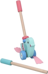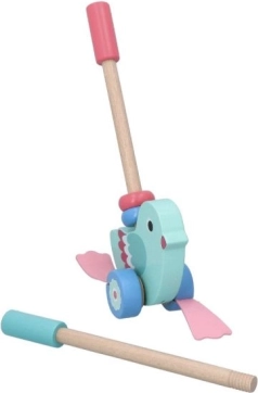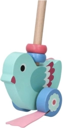 Dit mooie houten duwvogeltje is ontworpen om kinderen vanaf 12 maanden te helpen bij de ontwikkeling van motoriek en evenwicht. Dankzij de afneembare stok van 48 cm is het speelgoed gemakkelijk te duwen en te hanteren. Het totale design combineert een turquoise lichaam en roze vleugels, wat de verbeelding en het kleurgevoel van kinderen stimuleert.