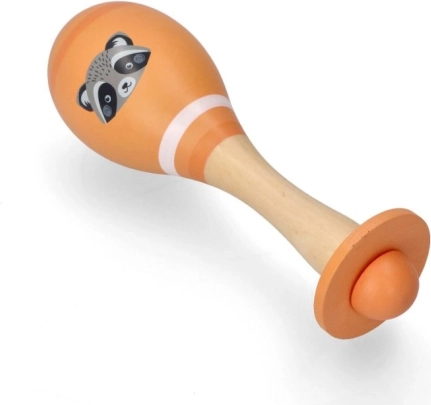 De houten kindermaraca is ontworpen om kinderen kennis te laten maken met de wereld van geluiden. Geschikt voor kinderen vanaf 5 maanden en helpt bij de ontwikkeling van muzikale en coördinatieve vaardigheden. Door beweging met lichte muzikale begeleiding kan het bijdragen aan het verbeteren van motorische vaardigheden.