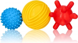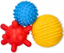 De set bevat drie ballen die zijn gemaakt van veilige en duurzame kunststof. De ballen helpen de motorische vaardigheden van het kind te ontwikkelen en zorgen ervoor dat spelen zowel leuk als leerzaam is.