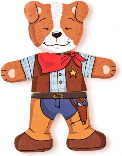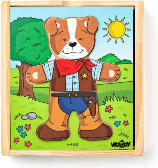 De aankleedpuzzel met hondjesthema is een ideale didactische speelgoed voor de eerste puzzelervaringen. Kinderen kunnen de outfits van het hondje wisselen, kleuren en patronen leren en hun creativiteit ontwikkelen door verhaaltjes te verzinnen. Het kleine formaat past in een (rug)tas en is handig voor onderweg.