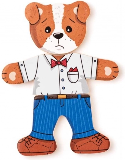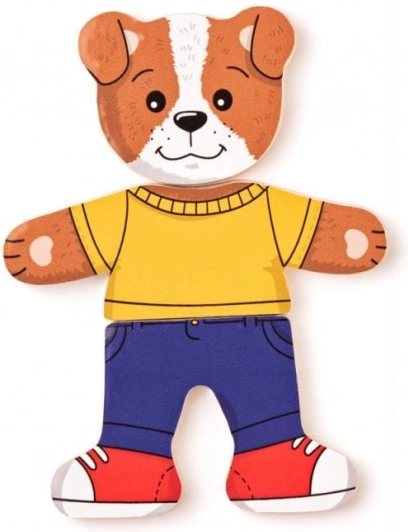 Het aankleden van het hondje motiveert kinderen tot fijne handelingen met de stukjes en stimuleert de ontwikkeling van motoriek en oog-handcoördinatie al vanaf 1 jaar.