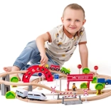 Deze prachtige houten treinspeelset bevat vele elementen die de creativiteit en verbeeldingskracht van kinderen stimuleren. Het is perfect verpakt, wat het een ideaal cadeau maakt.