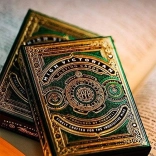 De decoratieve tuckbox met rijke gouden en groene folie en reliëfafwerking onderstreept het premium karakter van het High Victorian-deck van THEORY11.