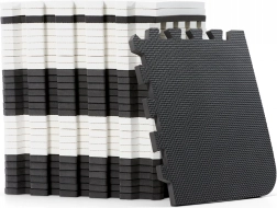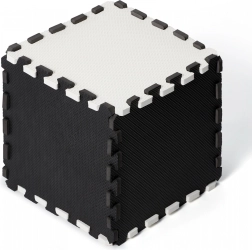 De stijlvolle zwart-witte KINDERKRAFT Luno schuimmat biedt kinderen vanaf 10 maanden een zachte en veilige speelruimte. De delen zijn eenvoudig als puzzel in elkaar te zetten, de onderlegger is afwasbaar, geluiddempend en isolerend tegen kou. Het geribbelde oppervlak is antislip en zonder uitneembare onderdelen. Dikte 1,2 cm, 30 tegels van 29,5 × 29,5 cm.